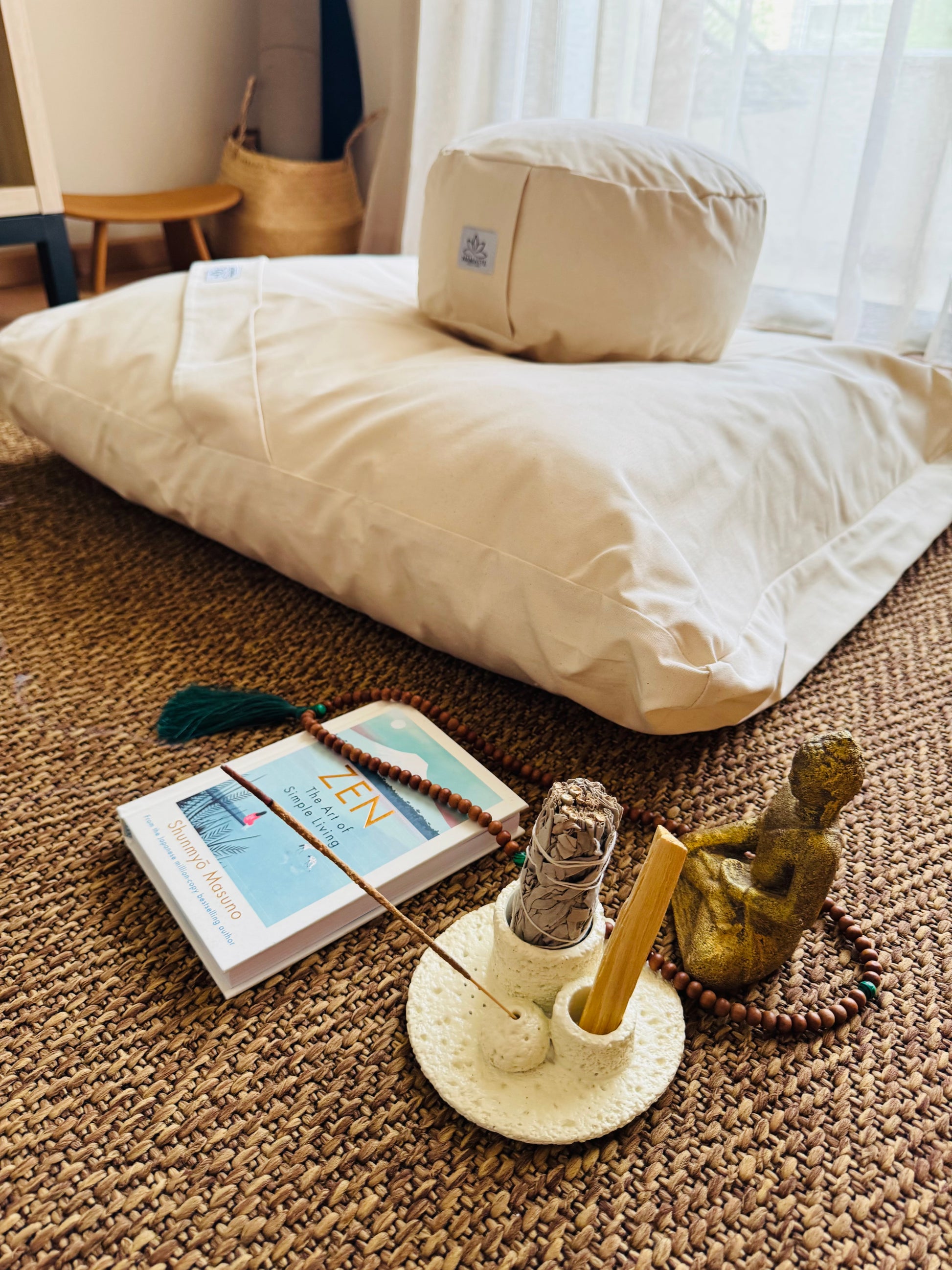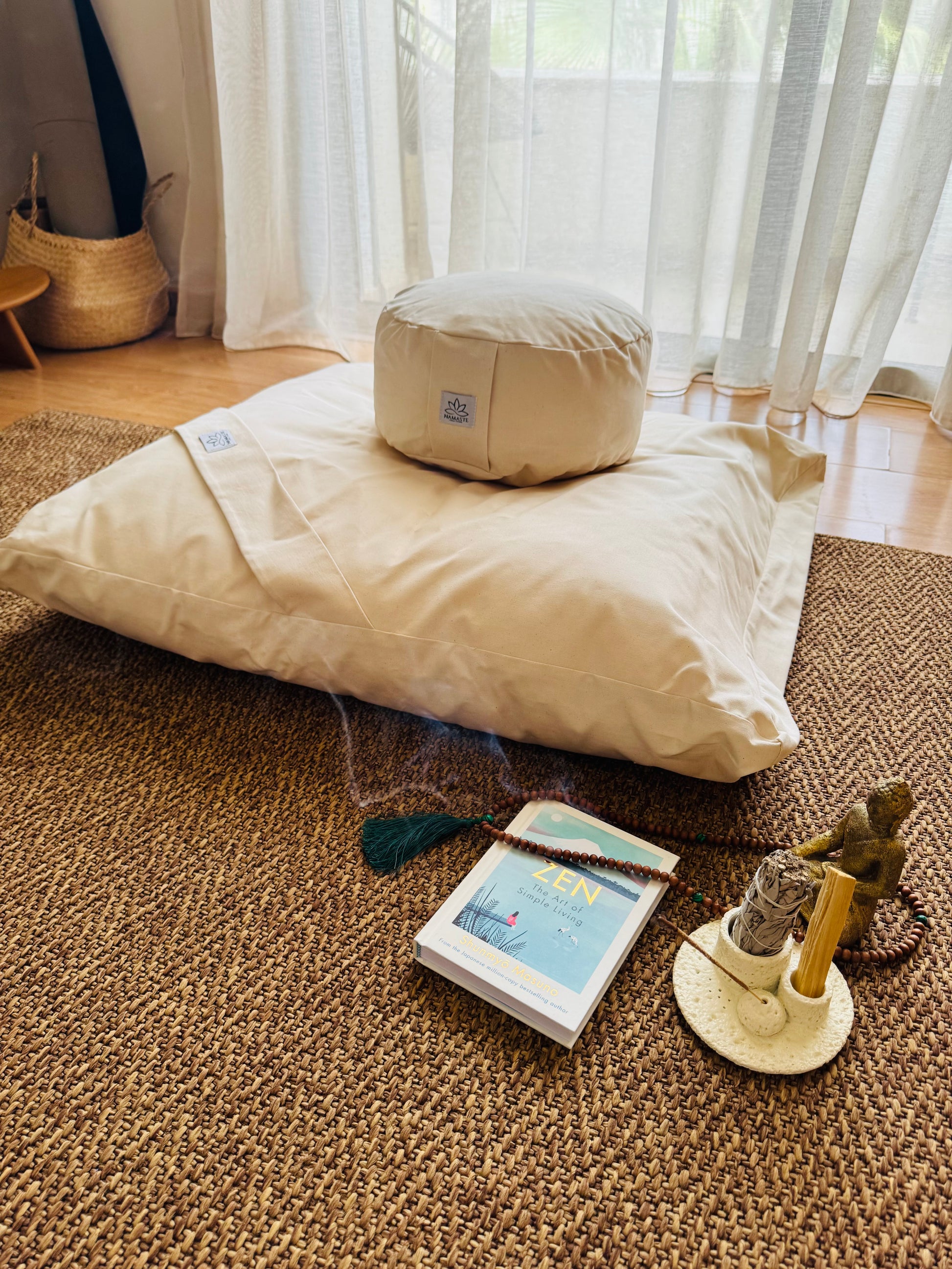Zafu - Coussin de Méditation en forme rond traditionnel est parfaitement adapté à la position assise pour soulager le bassin et les tensions dorsales durant une séance de méditation.